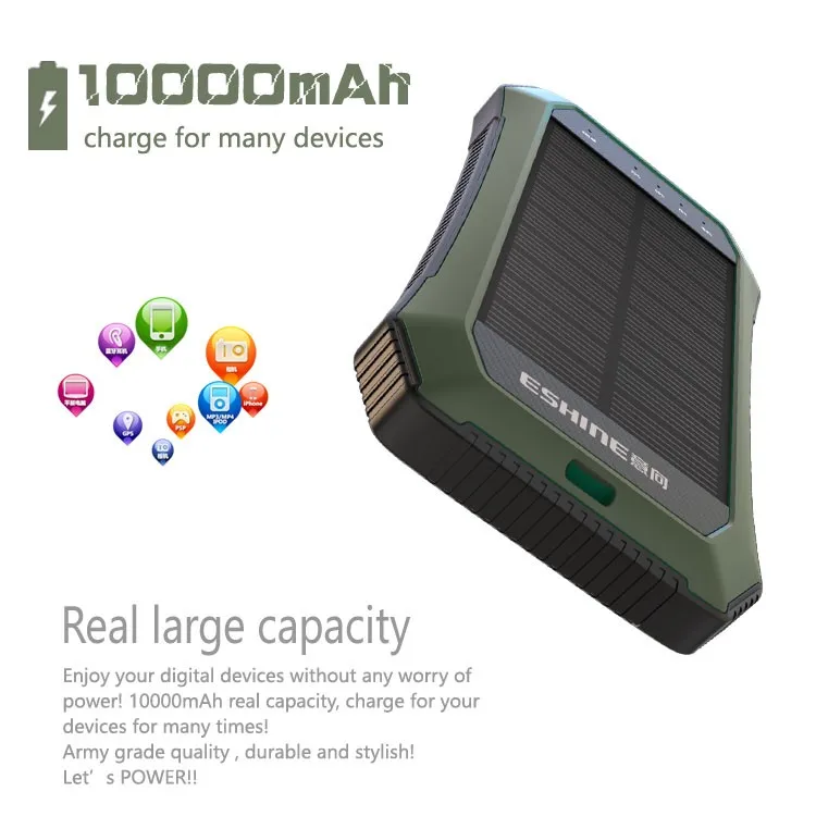 4.Solar panel makes it always keep charging outdoors.