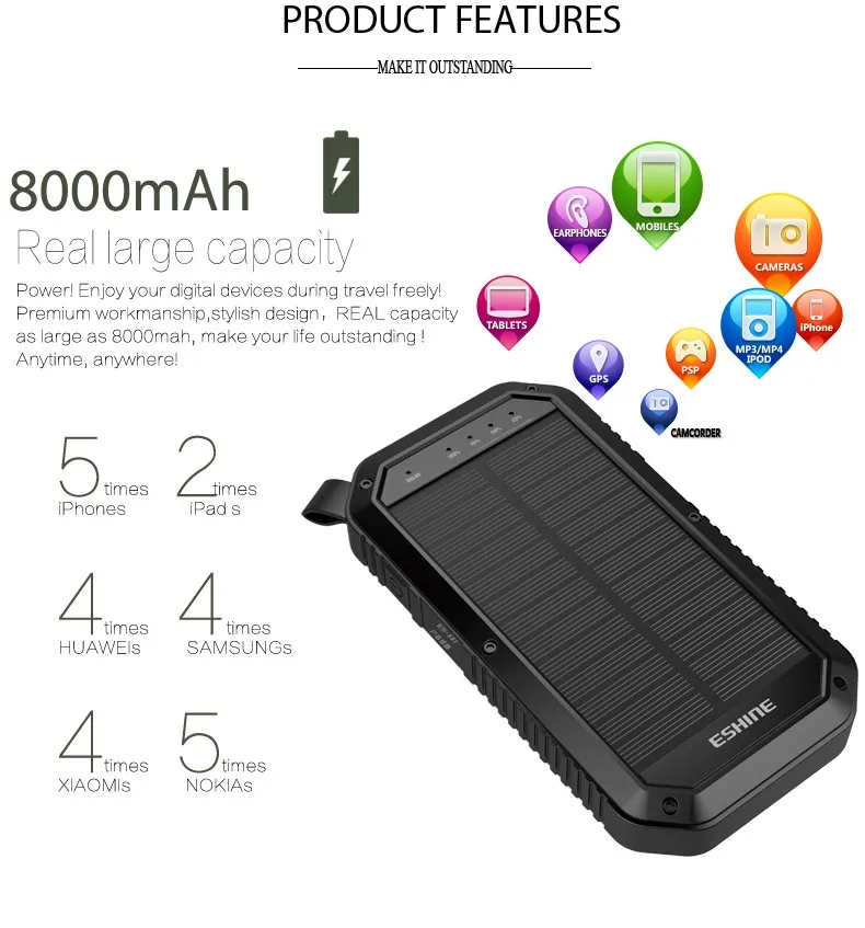 | Solar Charging : | 5V/200mA | Solar panel: | Monocrystalline silicon |